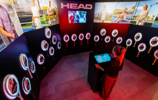 Über einen großen interaktiven Screen lässt sich das gesamte HEAD Produktportfolio intuitiv und spielerisch entdecken. Kundinnen und Kunden können sich durch das Sortiment navigieren, Produkte vergleichen und so das perfekte Tennis-Equipment individuell auswählen.